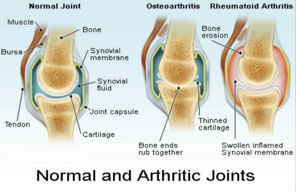 There are 2 types of arthritis – the most common being osteo-arthritis. Caused by wear-and-tear (polio walk) or aggravation on the body part; often in an old injury area, due to lack of the nutrients needed to maintain the joint or an inflammatory reaction to foods we eat or other things we are exposed to in our environment – like changes in weather. It is not the same thing as Osteoporosis.